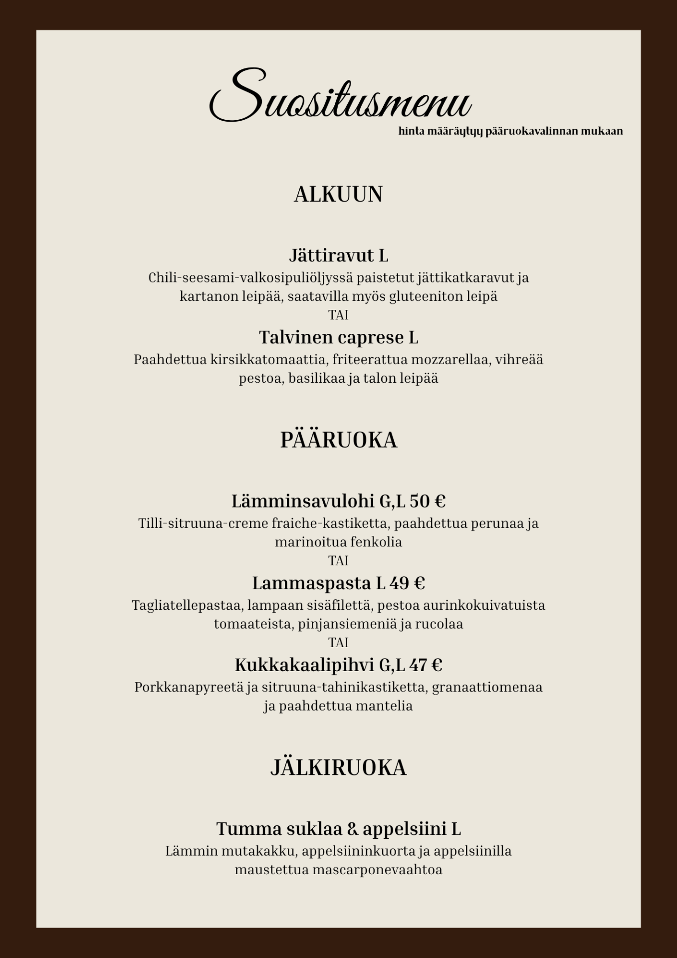 À la carte -listamme on voimassa talvikaudella viikonloppuisin.