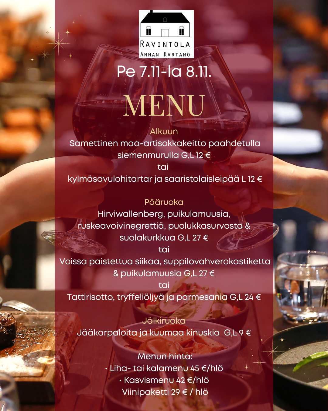 🍷 Pe 7.11. – Tuo isä nauttimaan tunnelmallisesta kynttiläillallisesta ja herkullisesta isänpäivämenusta.